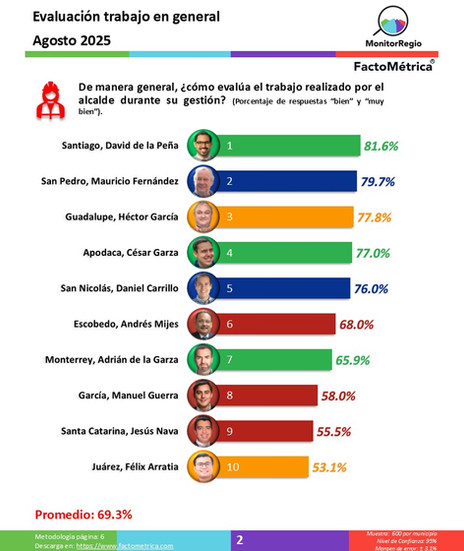 ✅ Trabajo en general (alcaldes): 69.3% promedio de aprobación.