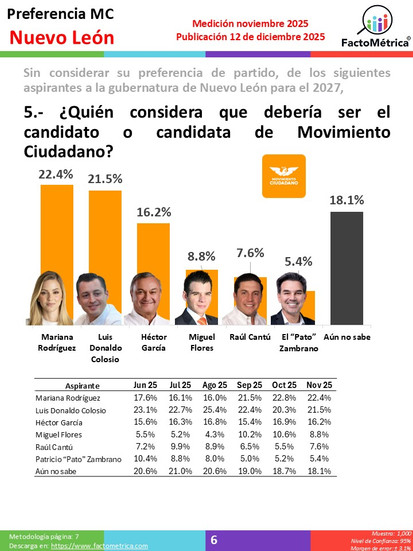 • Aspirantes mejor posicionados de Movimiento Ciudadano