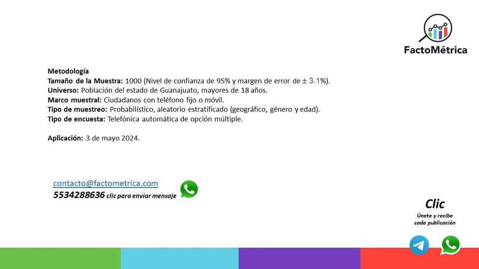 Senador Guanajuato 2024, 3 de mayo.Gerardo Leal7 may 20241 Min. de lecturaMiguel Márquez y Adriana Rodríguez 44.5%Ricardo Sheffield y Virginia Marie 35.0%Senador Guanajuato mayo 2024.pdfDescargar PDF • 365KB